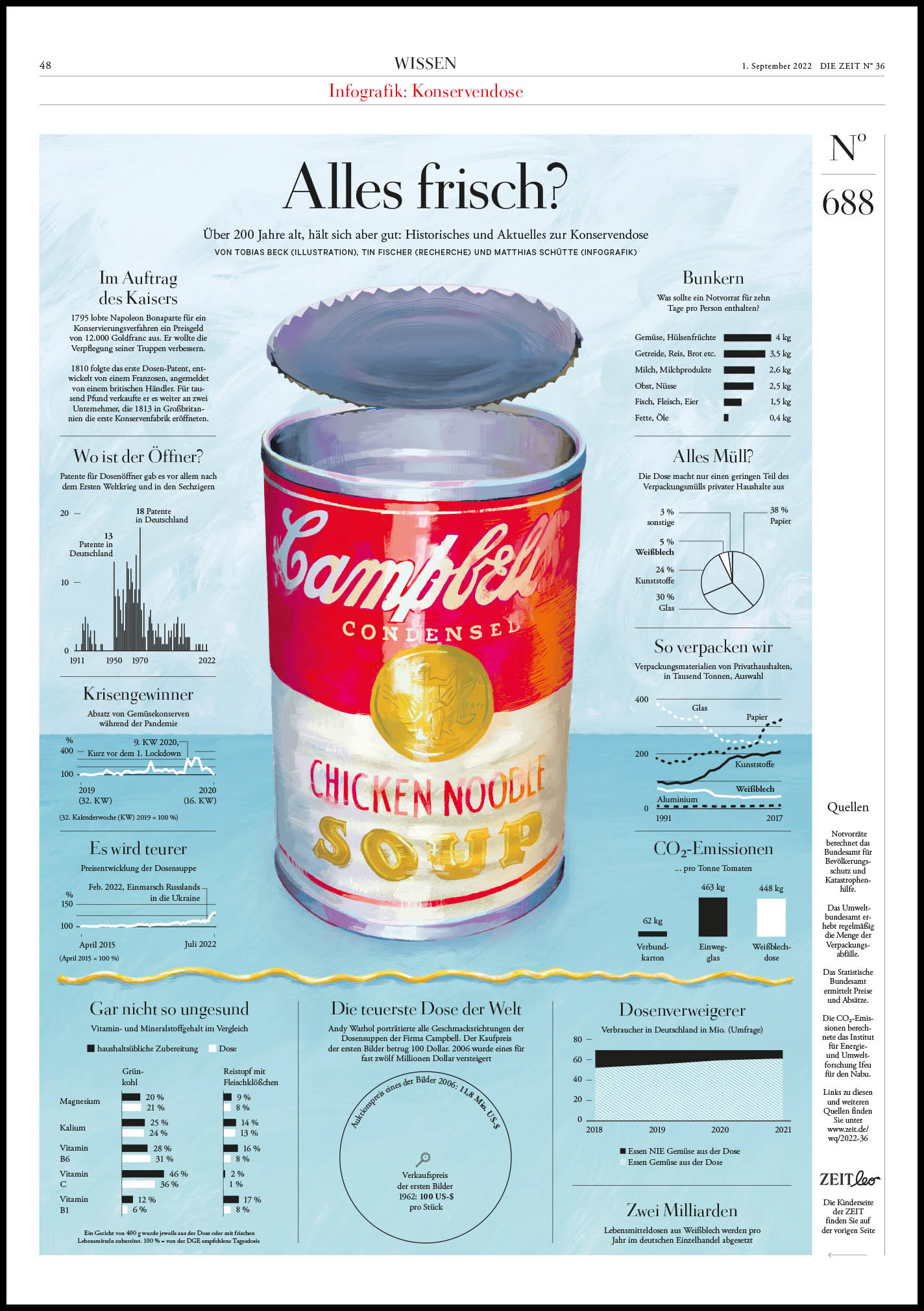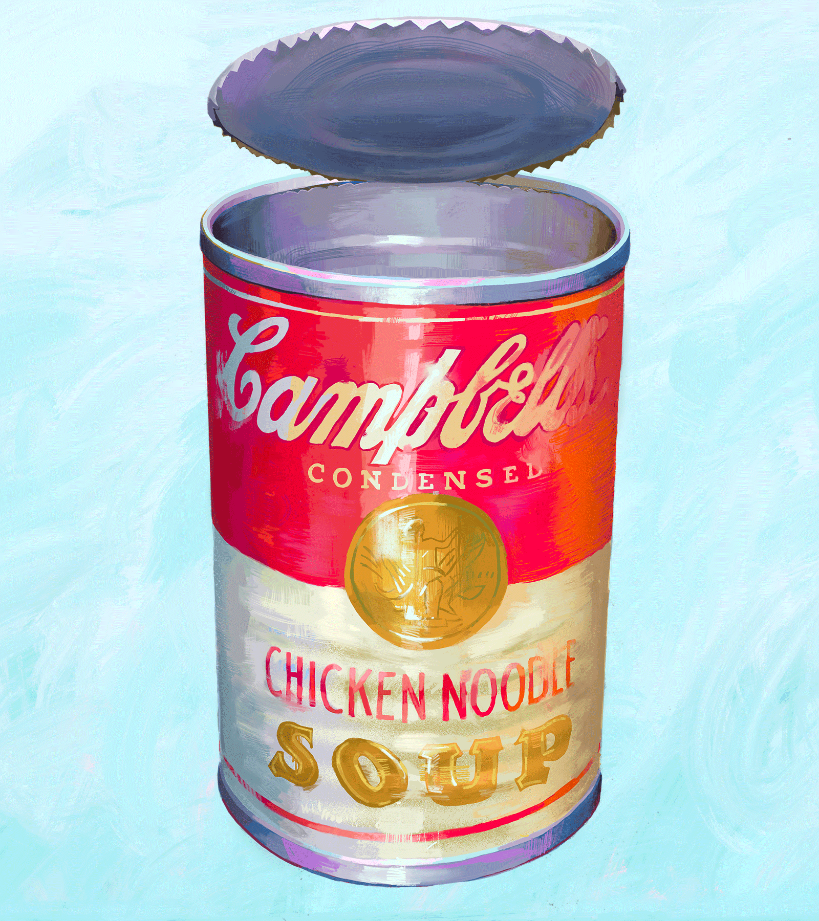 An infographic page with a painterly illustrated Campbell's can