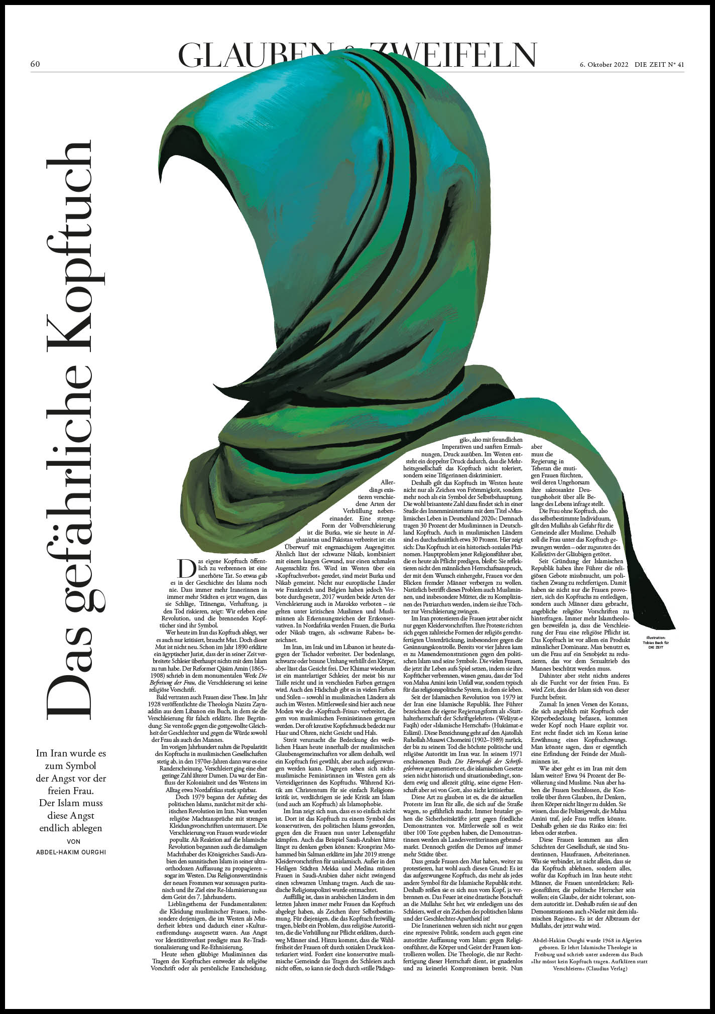 A painterly, digital illustration of an Hijab for an article written by Abdel-Hakim Ourghi